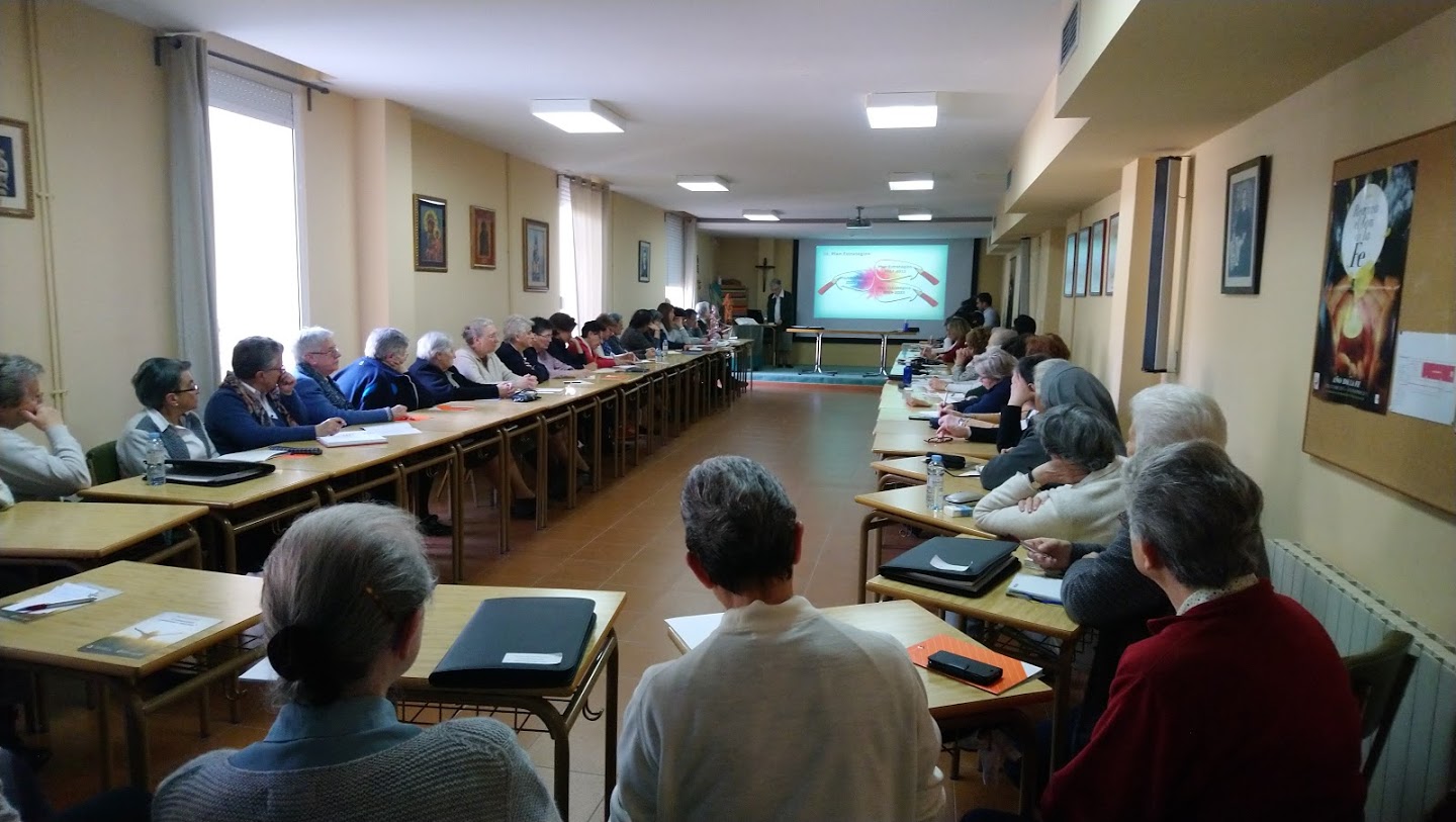 El lunes Santo, día 15 de abril, iniciamos una jornada especial en una sesión con la presencia de seglares. Tras un momento de oración, el Equipo de Titularidad presenta el informe del último sexenio 2013-2019. Una exposición completa de todas las actividades que se han realizado en todos los ámbitos educativos de los Colegios. A continuación los laicos representantes de todos las Comunidades educativas comparten de una manera dinámica y participativa sus reflexiones en torno al documento “Compartir Crisma y Misión”.
